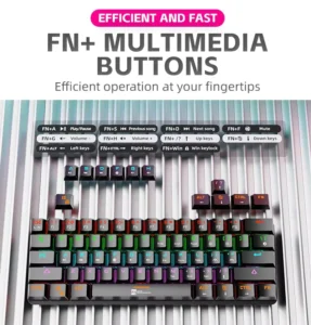 Le R8 1037 est un clavier mécanique ultra-compact à 61 touches, parfait pour les gamers et les amateurs de minimalisme. Avec son éclairage RGB personnalisable, il s’intègre parfaitement à toute configuration gaming.