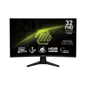 Le MSI MAG 32C6X est un moniteur incurvé de 32 pouces avec une courbure 1000R, conçu pour une immersion totale. Son taux de rafraîchissement de 250 Hz et son temps de réponse de 1 ms offrent une fluidité optimale pour les jeux rapides et compétitifs.